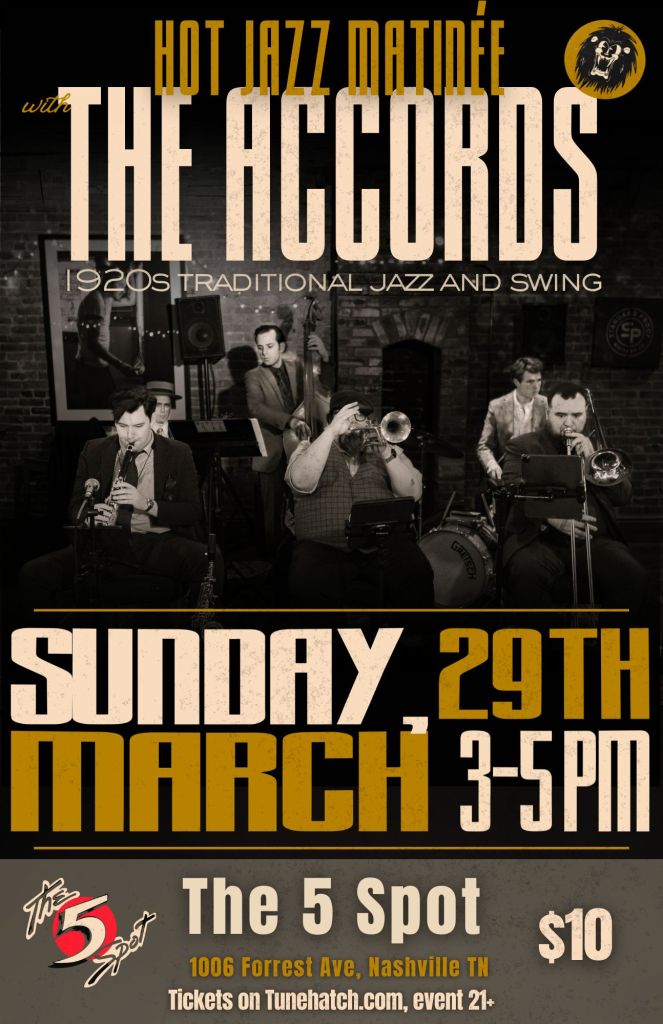 The Accords are here to bring that vibe back. Inspired by legends like King Oliver’s Creole Jazz Band, Louis Armstrong and his Hot Five, and Nick La Rocca’s Original Dixieland Jass Band, they stay true to the sound and energy of the 1920s through the 1940s. Their New Orleans grooves and tight arrangements set the perfect scene—whether you’re hitting the dance floor or soaking up a speakeasy vibe. The Accords keep Nashville’s jazz story swinging.